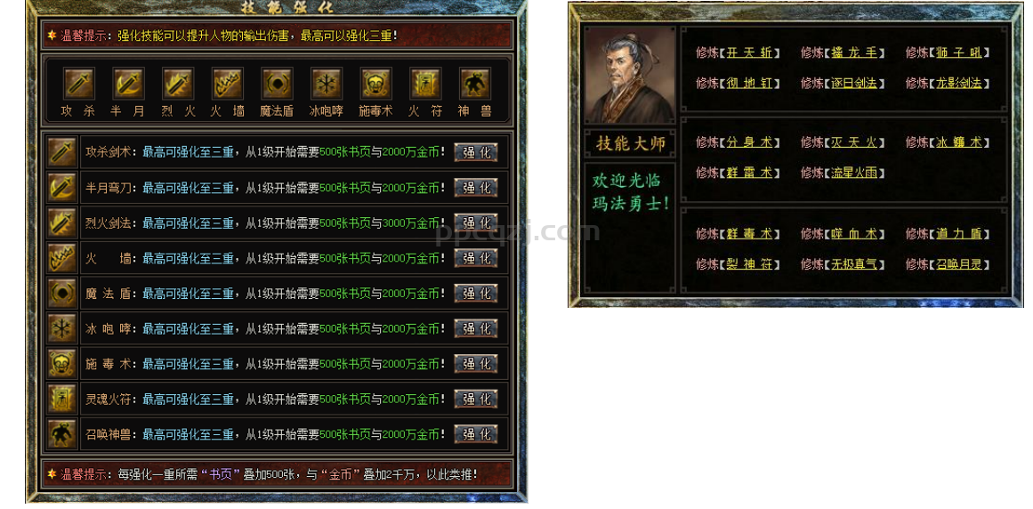 ⚫ 道士骷髅:18级可召炼狱骷髅,25级召3级炼狱骷髅,28级召6级炼狱骷髅,32级召裁决骷髅, 35级可召3级裁决骷髅, 40级可召6级裁决骷髅, 42级可召屠龙骷髅, 45级可召3级屠龙骷髅, , 50级可6级召屠龙骷髅(不要小看屠龙骷髅哦)