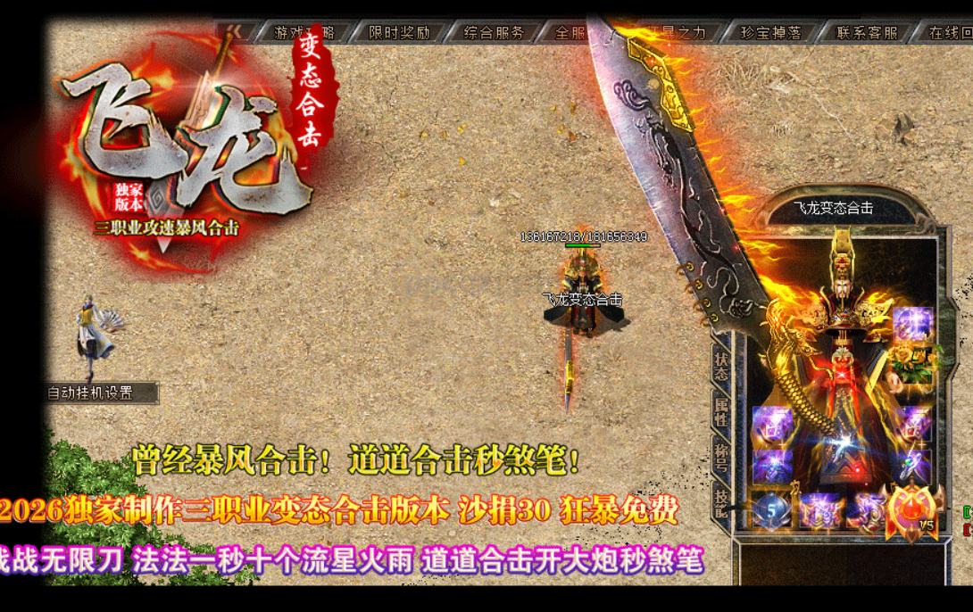 2.上线免费开启自动捡物!全部装备免费开自动回收!自动合击!