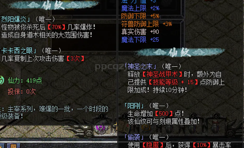 接下来出现极品的地方就是仙纹,仙纹可以通过炼仙符洗炼,这个地方大家不要因为传承的仙纹条数可以大于神话就认定传承的仙纹必定更极品,传承的合成代价更大,而且如果多条仙纹的属性都非常普通,有时候甚至不如一个神话装备上的极品属性仙纹!